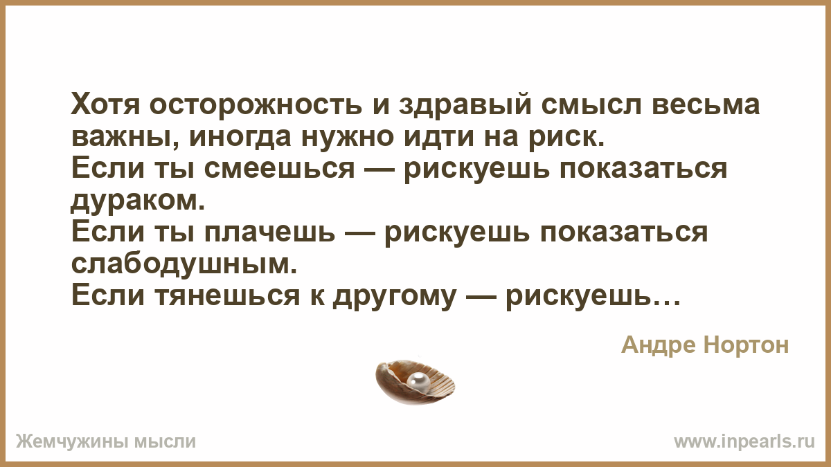 Хотя осторожность и здравый смысл весьма важны, иногда нужно идти на риск.