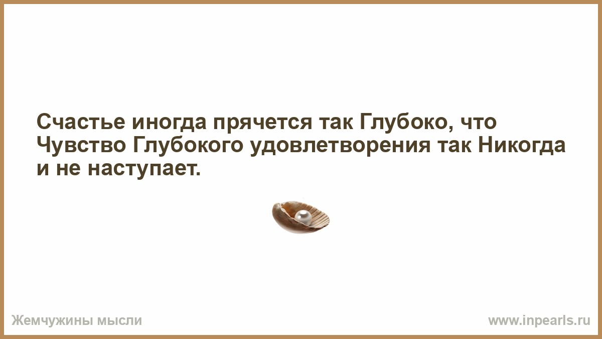 Счастье иногда прячется так Глубоко, что Чувство Глубокого удовлетворения так Никогда и не наступает.