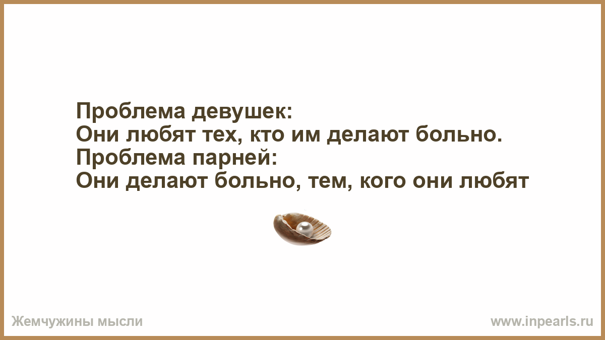 Проблема девушек: Они любят тех, кто им делают больно. Проблема парней: Они делают больно, тем, кого они любят