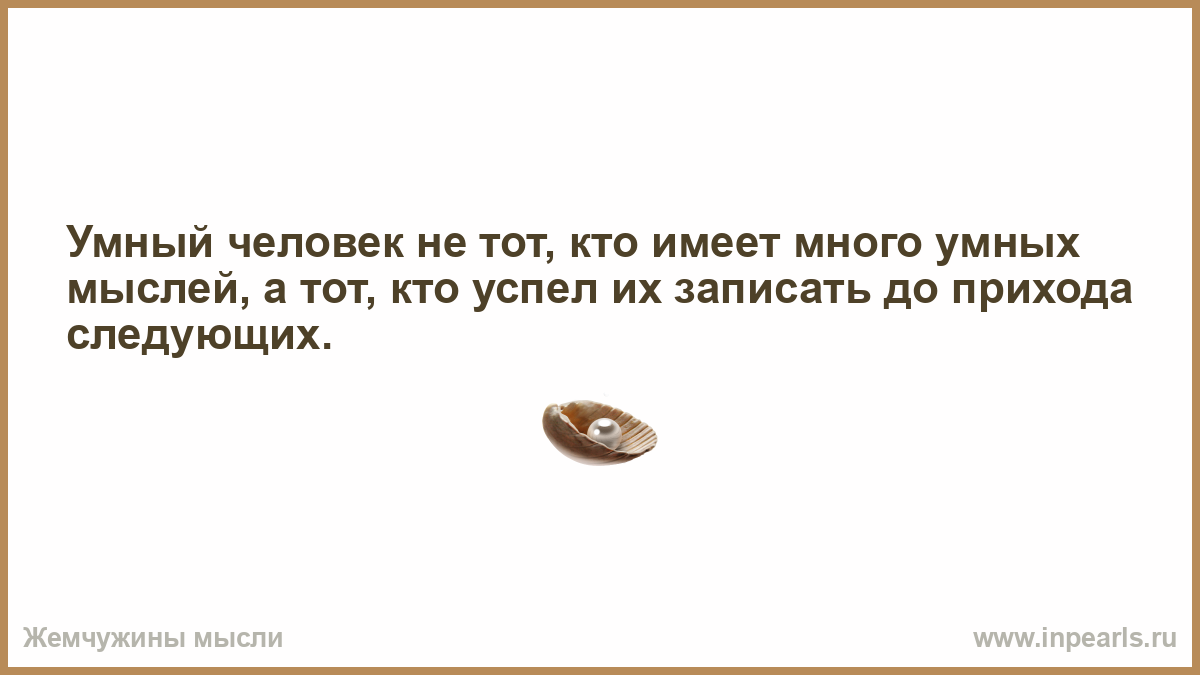 Умный человек не тот, кто имеет много умных мыслей, а тот, кто успел их записать до прихода следующих.