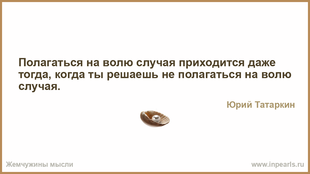 Полагаться на волю случая приходится даже тогда, когда ты решаешь не полагаться на волю случая.
