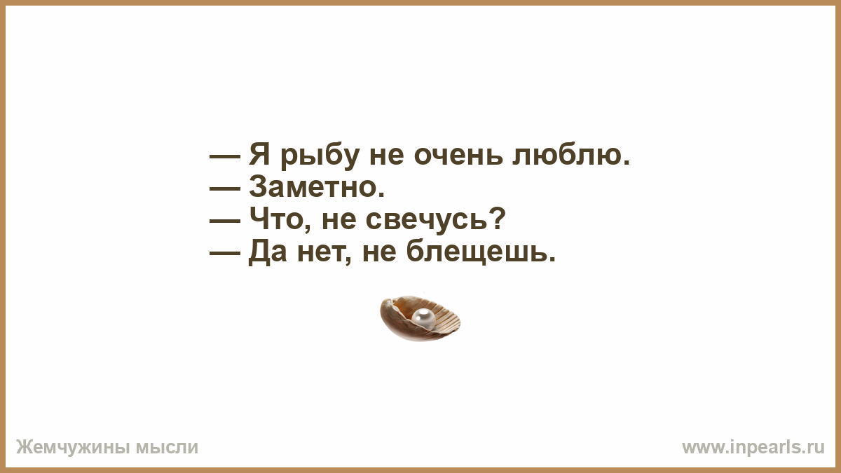 — Я рыбу не очень люблю. — Заметно. — Что, не свечусь? — Да нет, не блещешь.