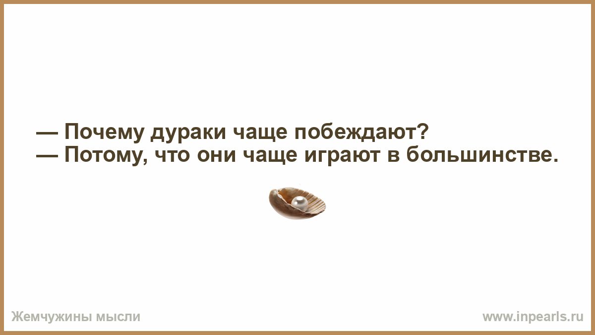 — Почему дураки чаще побеждают? — Потому, что они чаще играют в большинстве.