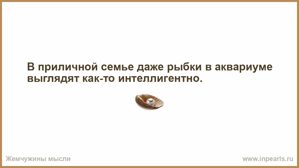 В приличной семье даже рыбки в аквариуме выглядят как-то интеллигентно.