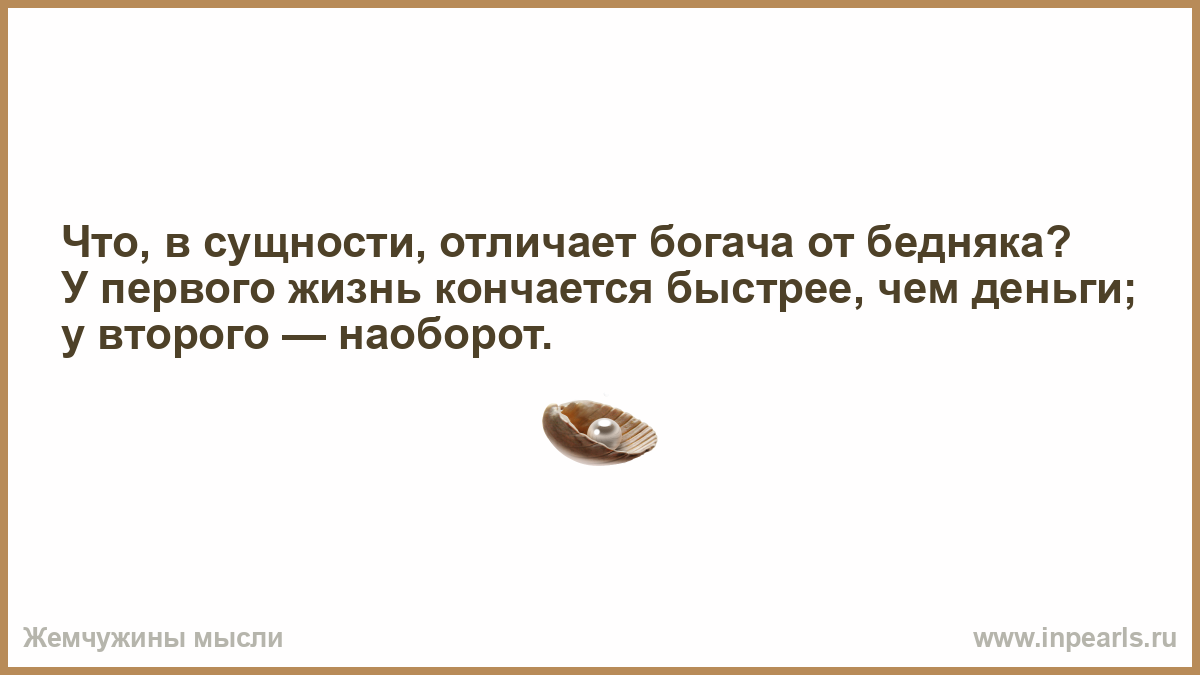 Что, в сущности, отличает богача от бедняка? У первого жизнь кончается быстрее, чем деньги; у второго — наоборот.