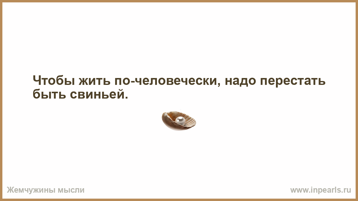 Чтобы жить по-человечески, надо перестать быть свиньей.