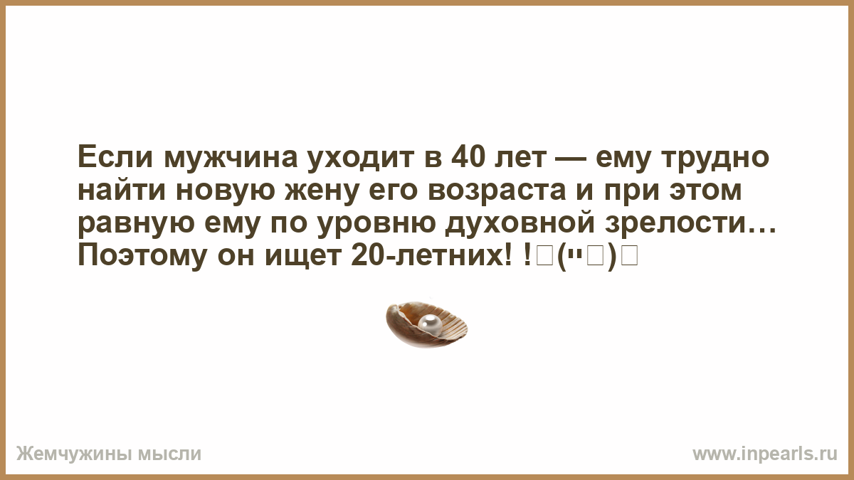 Если мужчина уходит в 40 лет — ему трудно найти новую жену его возраста и при этом равную ему по уровню духовной зрелости… Поэтому он ищет 20-летних! !ღ(ړײ)ღ