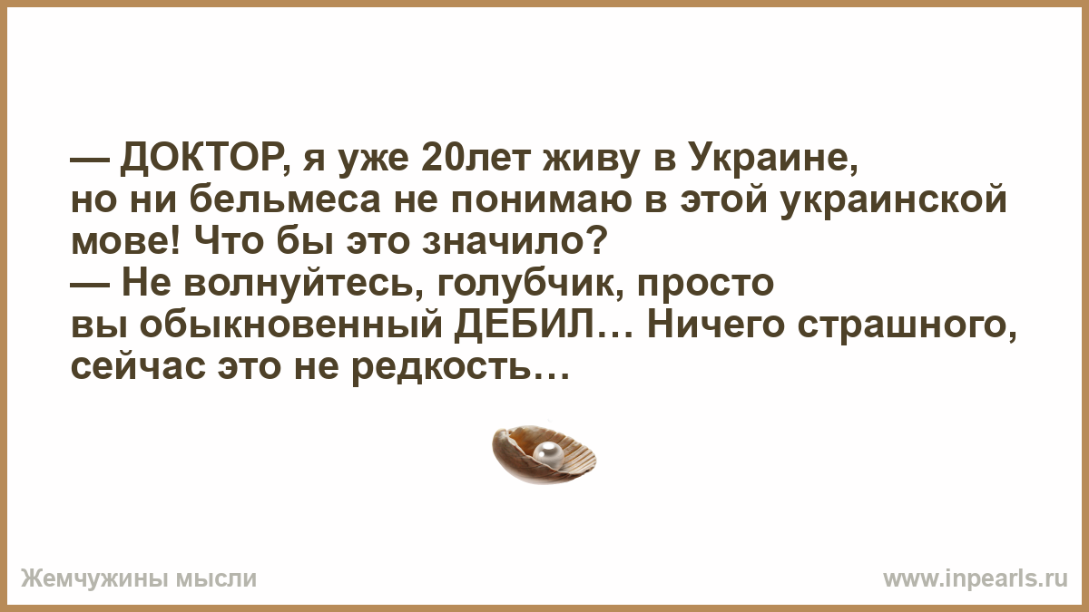 — ДОКТОР, я уже 20лет живу в Украине, но ни бельмеса не понимаю в этой украинской мове! Что бы это значило?