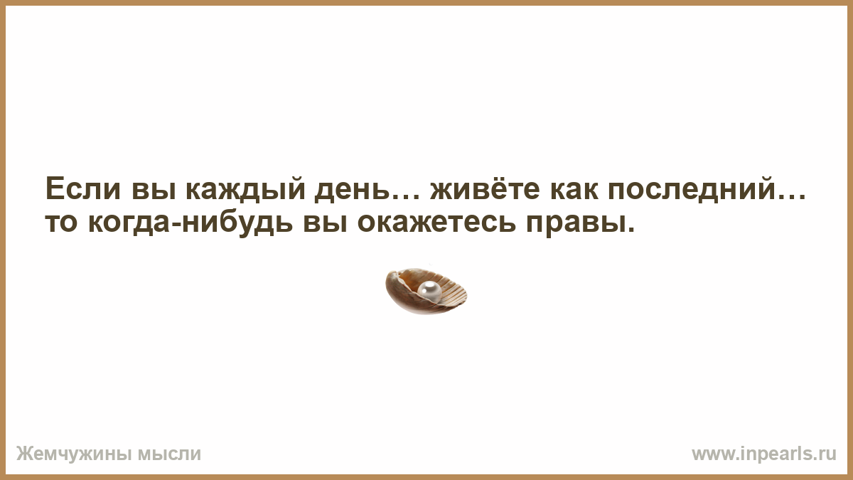 Если вы каждый день… живёте как последний… то когда-нибудь вы окажетесь правы.