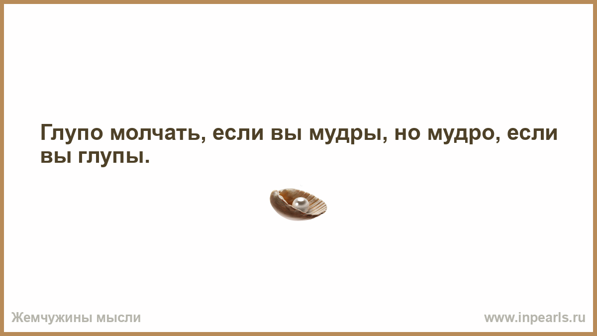 Глупо молчать, если вы мудры, но мудро, если вы глупы.