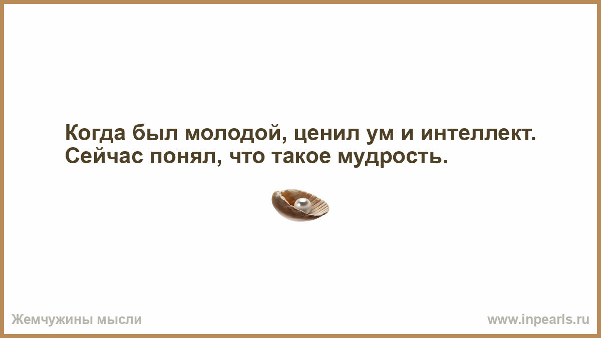 Когда был молодой, ценил ум и интеллект. Сейчас понял, что такое мудрость.