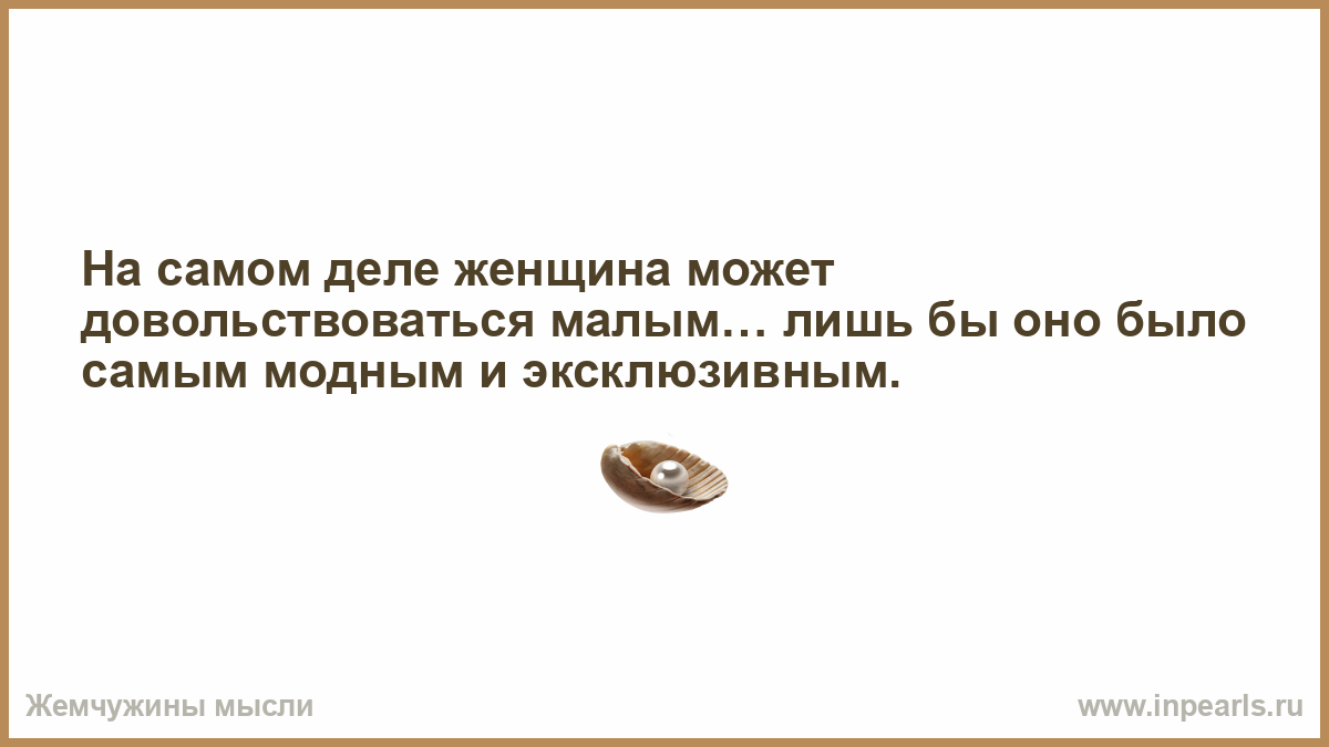 На самом деле женщина может довольствоваться малым… лишь бы оно было самым модным и эксклюзивным.