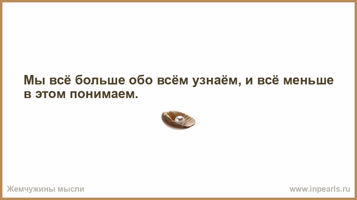 Мы всё больше обо всём узнаём, и всё меньше в этом понимаем.