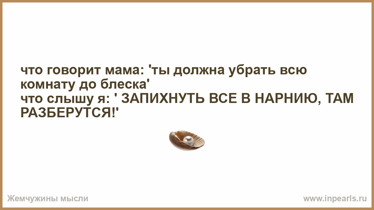 что говорит мама: 'ты должна убрать всю комнату до блеска'