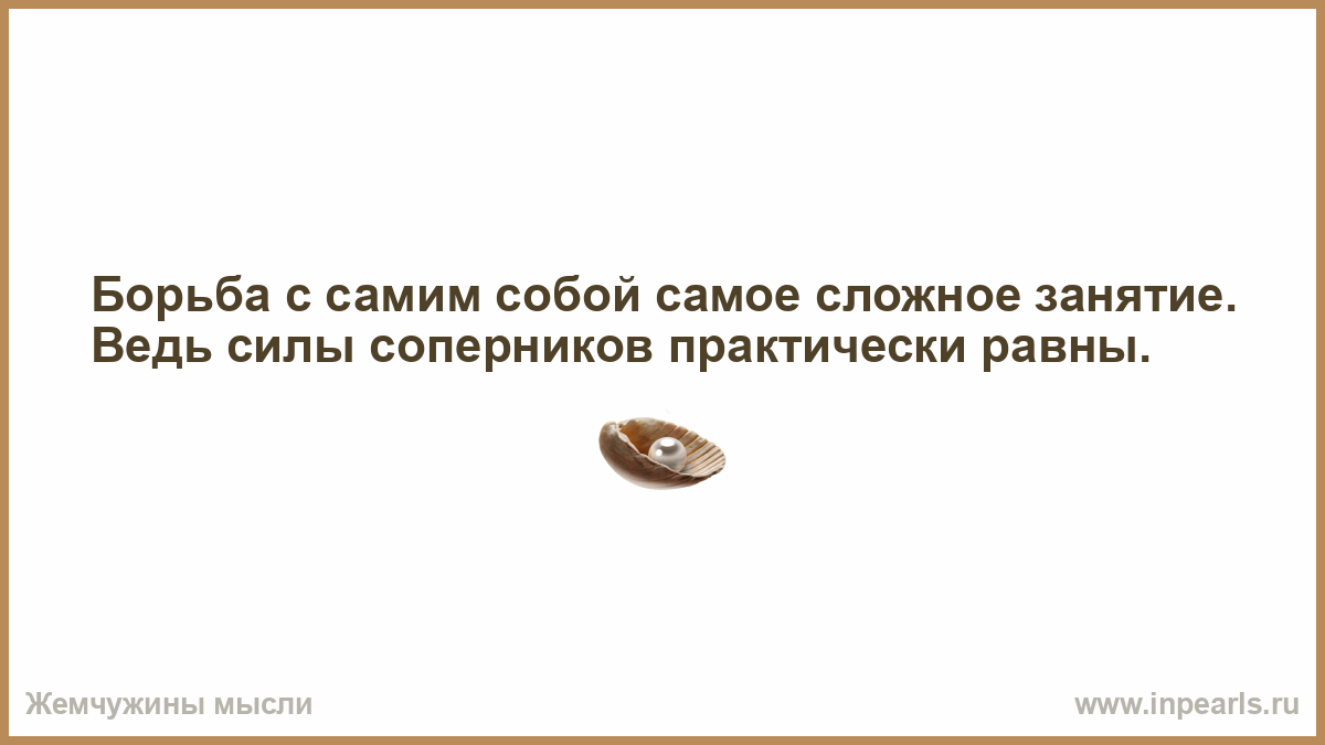 Борьба с самим собой самое сложное занятие. Ведь силы соперников практически равны.