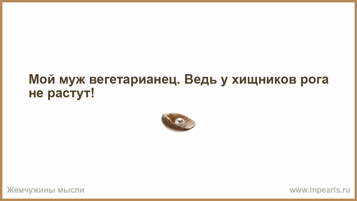 Мой муж вегетарианец. Ведь у хищников рога не растут!
