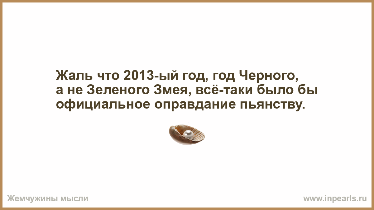Жаль что 2013-ый год, год Черного, а не Зеленого Змея, всё-таки было бы официальное оправдание пьянству.