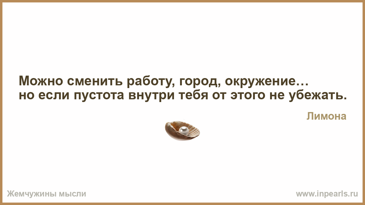 Можно сменить работу, город, окружение… но если пустота внутри тебя от этого не убежать.