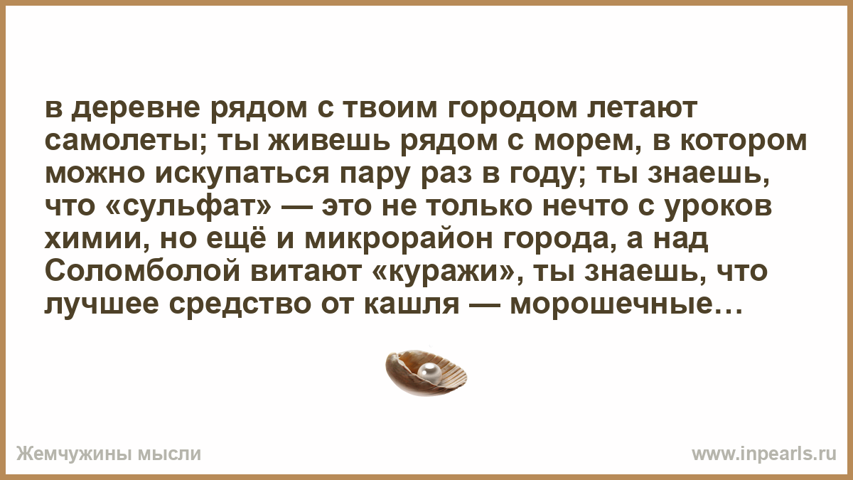 в деревне рядом с твоим городом летают самолеты; ты живешь рядом с морем, в котором можно искупаться пару раз в году; ты знаешь, что «сульфат» — это не только нечто с уроков химии, но ещё и микрорайон города, а над Соломболой витают «куражи», ты знаешь, что лучшее средство от кашля — морошечные кукли; ты знаешь, что такое стирка белья в проруби и вообще в реке; любая возвышенность, пусть и на пару метров над землей, в твоих краях гордо именуется «горой»; ты много раз прогуливался по деревянным тротуарам; на примере знаменитого земляка знаешь, что лучшей судьбы можно добиться, уйдя в столицу с рыбным обозом; с давних времен про твой город говорят: «Треска. Доска. Тоска»;с раннего детства ты знаешь, как пахнет свежая древесина; слова «космодром» и «атомные подводные лодки» не кажутся чем-то далеким; тебе не смешно от этой шутки: «У вас лето было?» «Да, но в этот день, я работал»; ты считаешь, что вода 10 градусов достаточно теплая для купания; для тебя найти снег в июле — это нормально; месяц и солнце, висящие рядышком, не вызывают у тебя равно никаких эмоций; ты хоть раз заливал байки о том, что по улицам бродят медведи… и тебе верили; россказни петербуржцев про белые ночи -вызывают у тебя только усмешку; когда сибиряки рассказывают про пятидесятиградусные морозы, тебе становится неудобно, но ты вовремя вспоминаешь слово «влажность», чтобы сказать, что у нас тоже холодно; встретив в горах Кавказа, на Валдае, в Сибири или в Москве автомобиль с номером региона «29», ты начинаешь мигать фарами, сигналить и радоваться: «Кругом наши!»…