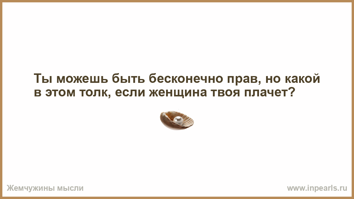 Ты можешь быть бесконечно прав, но какой в этом толк, если женщина твоя плачет?