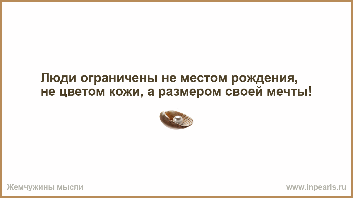 Люди ограничены не местом рождения, не цветом кожи, а размером своей мечты!