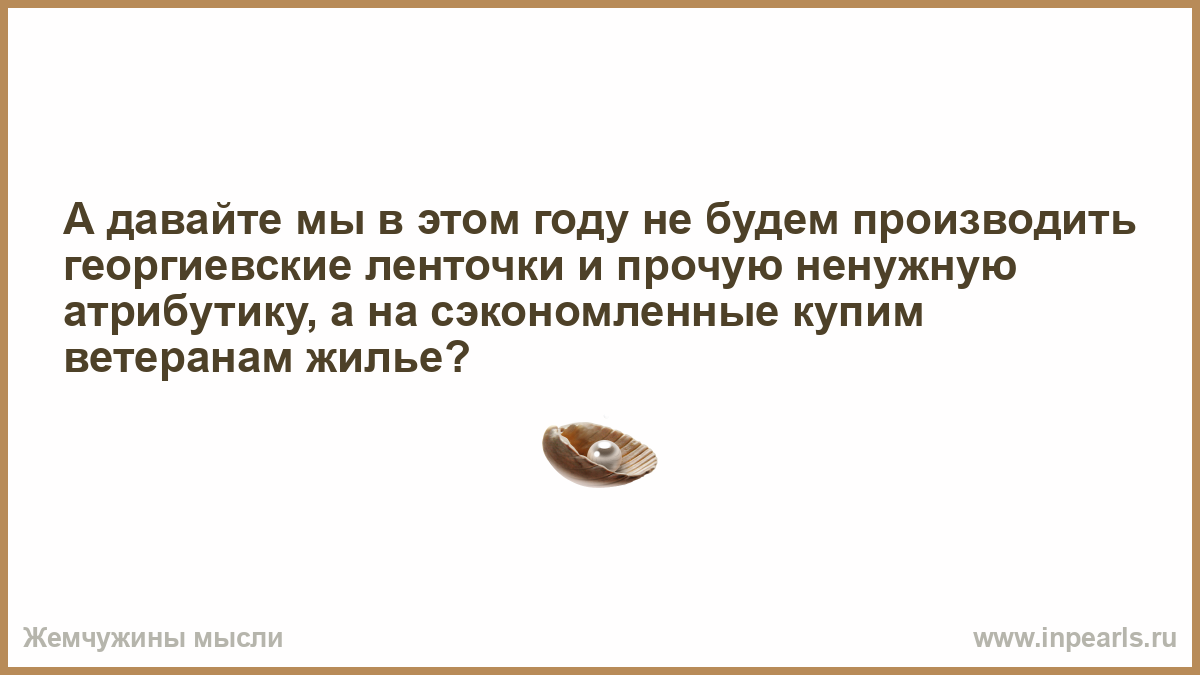А давайте мы в этом году не будем производить георгиевские ленточки и прочую ненужную атрибутику, а на сэкономленные купим ветеранам жилье?