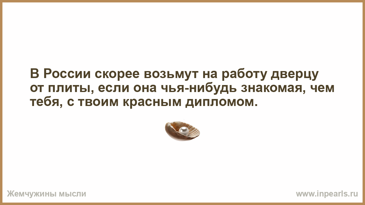 В России скорее возьмут на работу дверцу от плиты, если она чья-нибудь знакомая, чем тебя, с твоим красным дипломом.