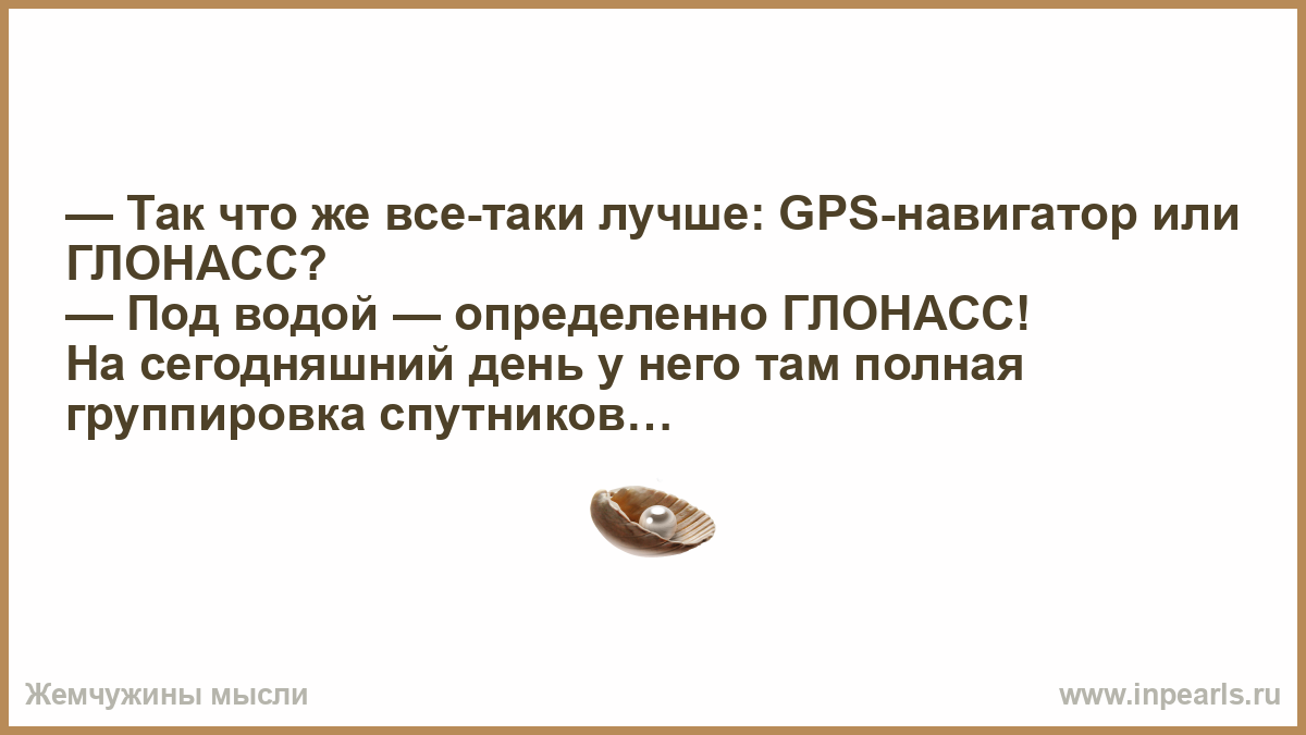 — Под водой — определенно ГЛОНАСС! На сегодняшний день у него там полная группировка спутников…