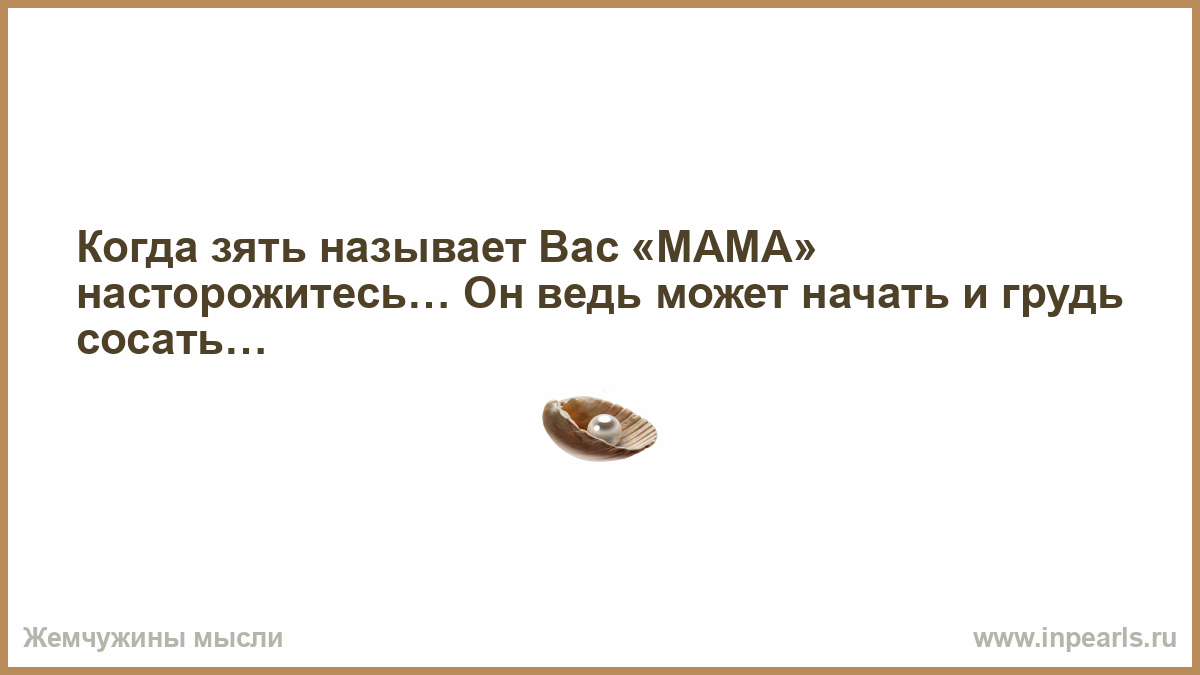 Когда зять называет Вас «МАМА» насторожитесь… Он ведь может начать и грудь сосать…