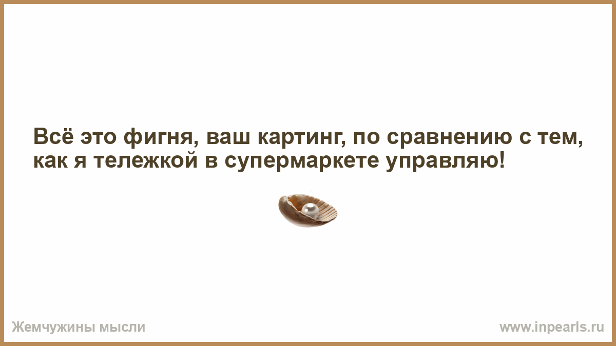 Всё это фигня, ваш картинг, по сравнению с тем, как я тележкой в супермаркете управляю!