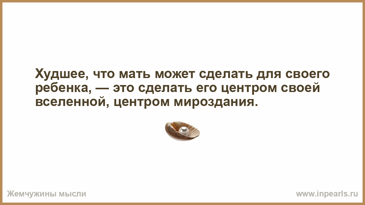 Худшее, что мать может сделать для своего ребенка, — это сделать его центром своей вселенной, центром мироздания.