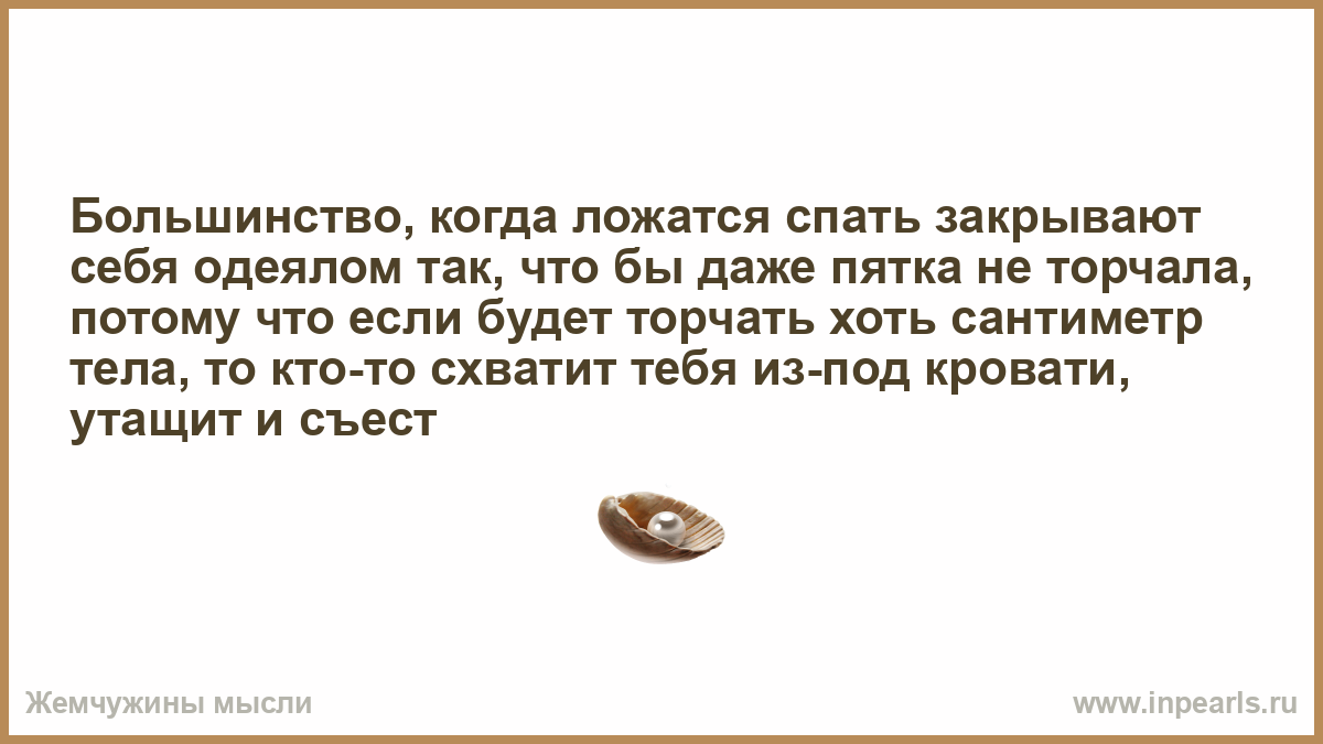 Большинство, когда ложатся спать закрывают себя одеялом так, что бы даже пятка не торчала, потому что если будет торчать хоть сантиметр тела, то кто-то схватит тебя из-под кровати, утащит и съест