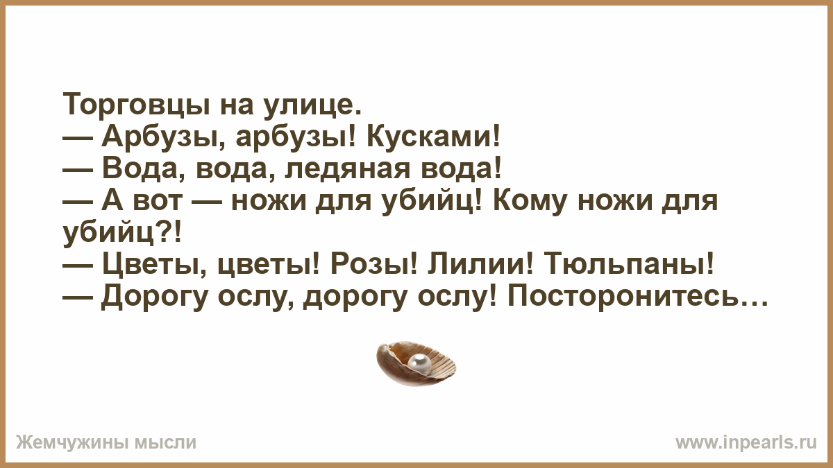 — А вот — ножи для убийц! Кому ножи для убийц?!