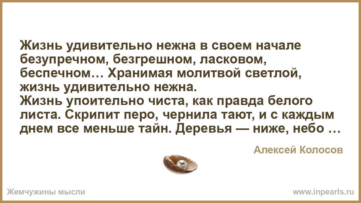Жизнь удивительно нежна в своем начале безупречном, безгрешном, ласковом, беспечном… Хранимая молитвой светлой, жизнь удивительно нежна.