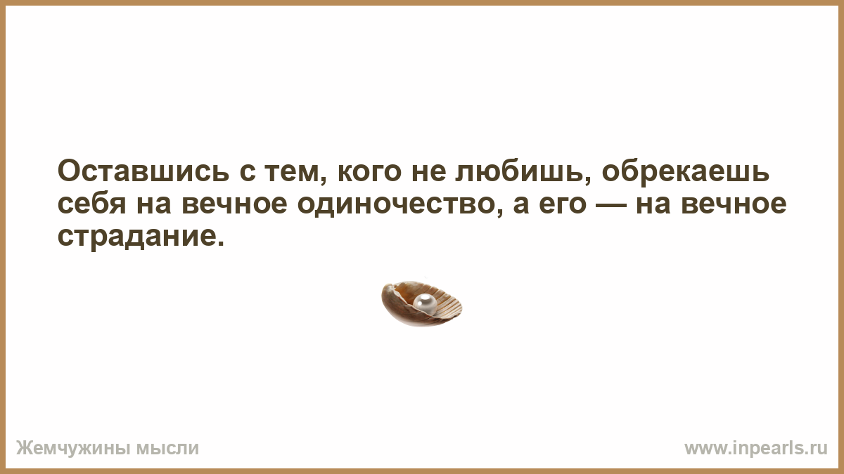 Оставшись с тем, кого не любишь, обрекаешь себя на вечное одиночество, а его — на вечное страдание.