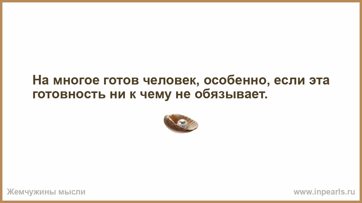 На многое готов человек, особенно, если эта готовность ни к чему не обязывает.