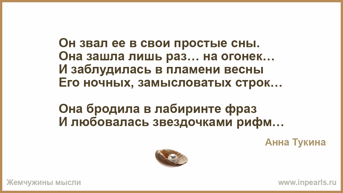 Он звал ее в свои простые сны.
