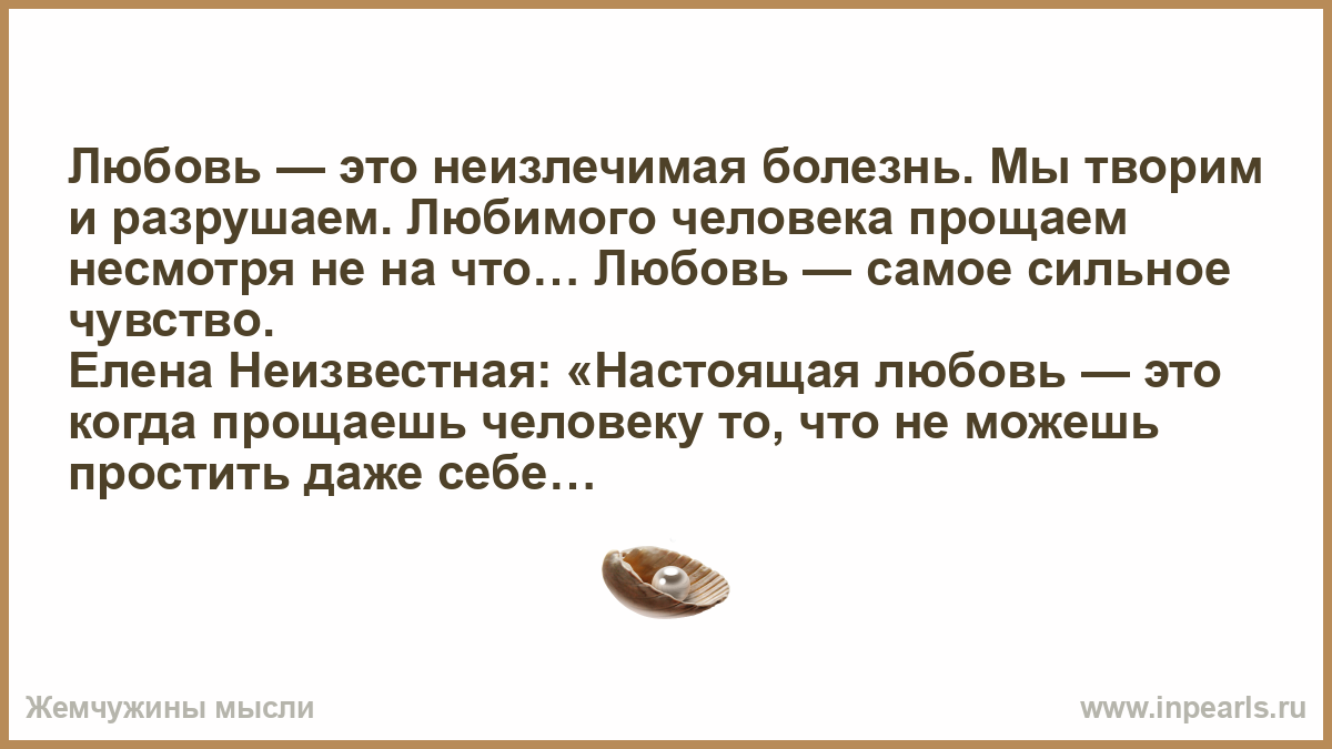 Любовь — это неизлечимая болезнь. Мы творим и разрушаем. Любимого человека прощаем несмотря не на что… Любовь — самое сильное чувство.