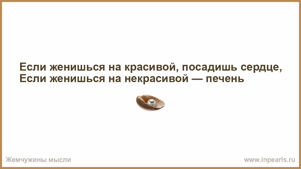 Если женишься на красивой, посадишь сердце, Если женишься на некрасивой — печень