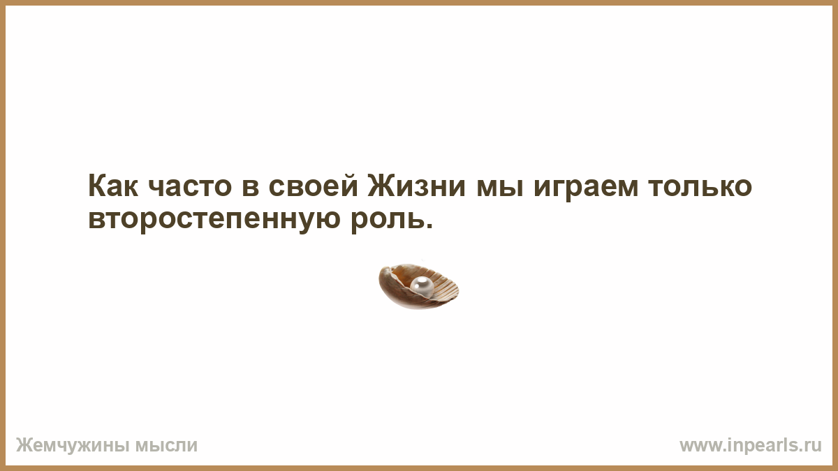 Как часто в своей Жизни мы играем только второстепенную роль.