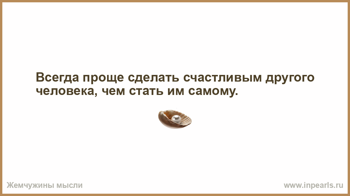 Всегда проще сделать счастливым другого человека, чем стать им самому.