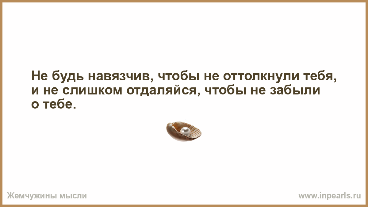 Не будь навязчив, чтобы не оттолкнули тебя, и не слишком отдаляйся, чтобы не забыли о тебе.