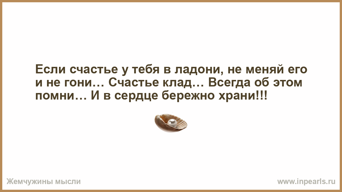Если счастье у тебя в ладони, не меняй его и не гони… Счастье клад… Всегда об этом помни… И в сердце бережно храни!!!