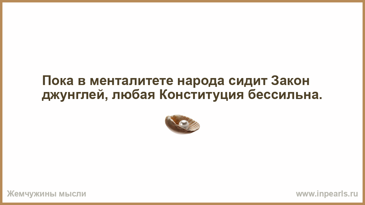 Пока в менталитете народа сидит Закон джунглей, любая Конституция бессильна.