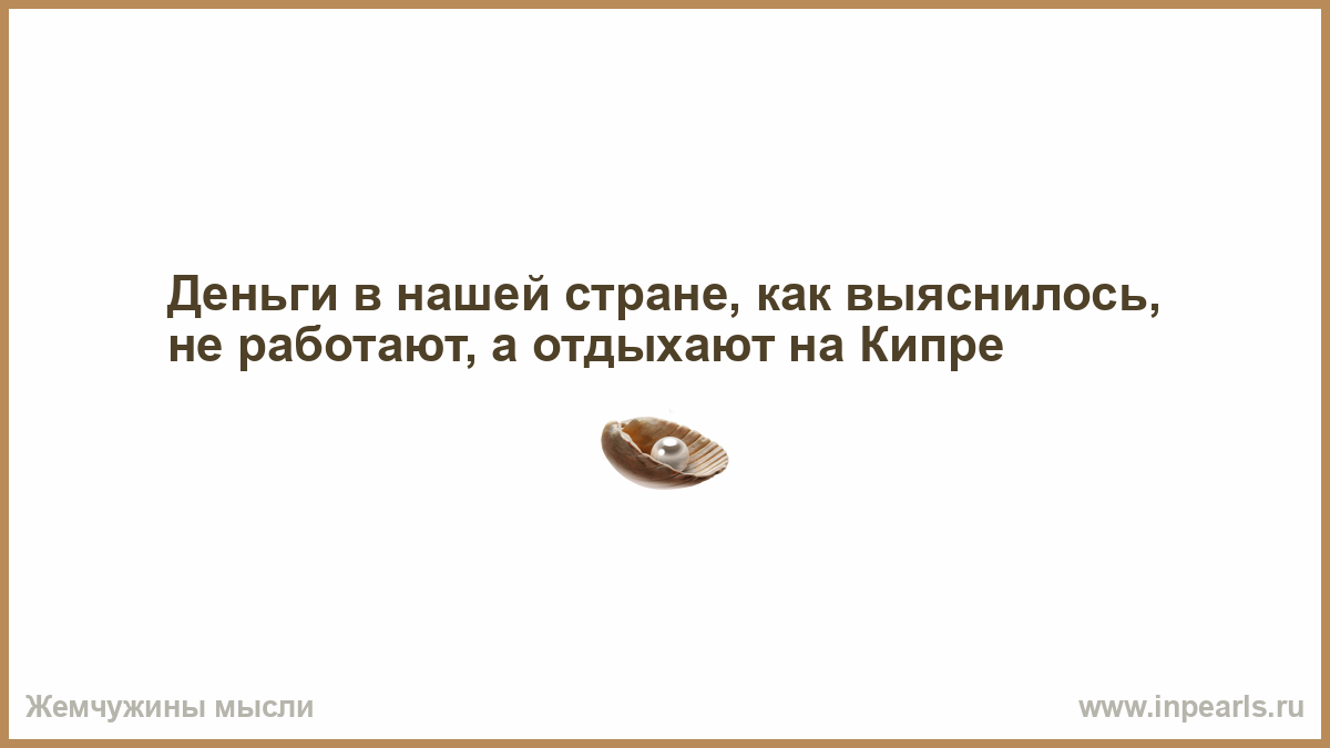 Деньги в нашей стране, как выяснилось, не работают, а отдыхают на Кипре