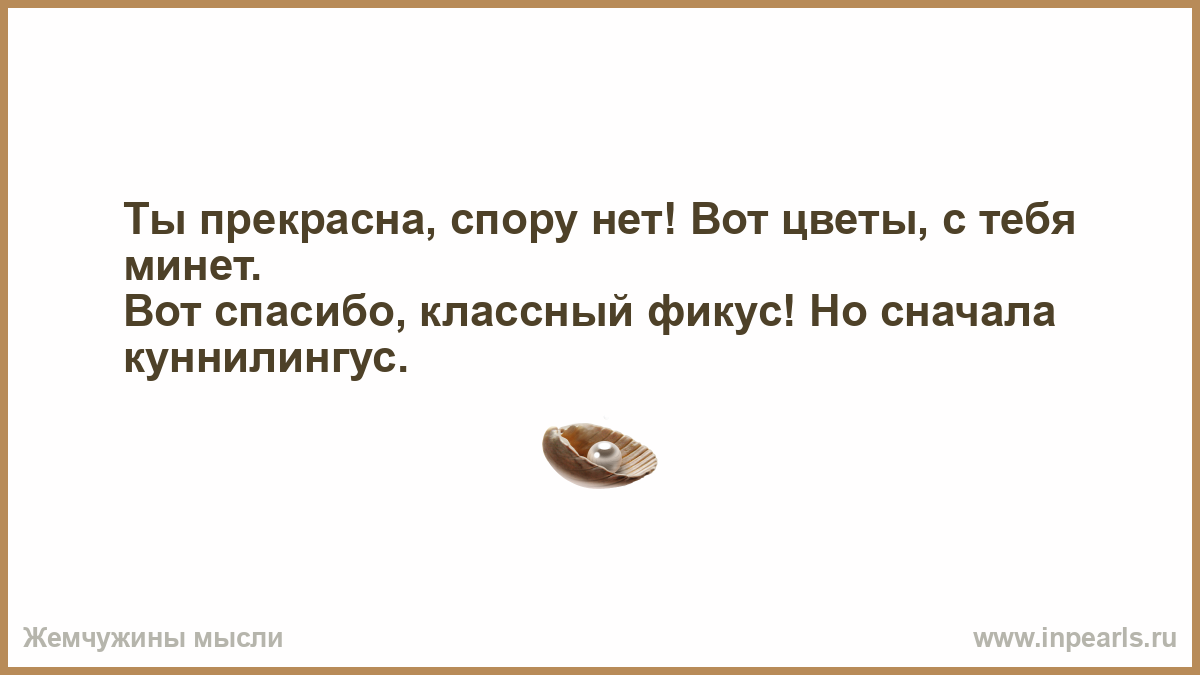 Ты прекрасна, спору нет! Вот цветы, с тебя минет. Вот спасибо, классный фикус! Но сначала куннилингус.