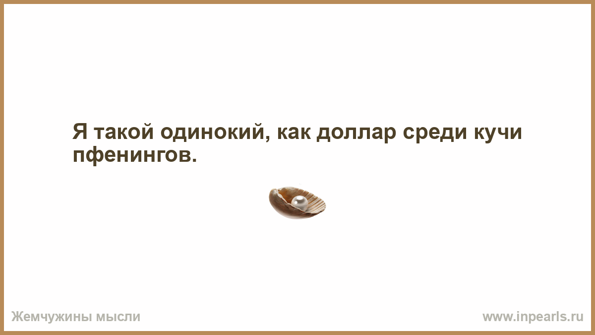 Я такой одинокий, как доллар среди кучи пфенингов.
