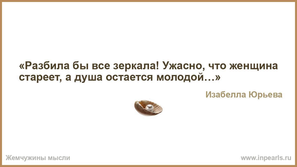 «Разбила бы все зеркала! Ужасно, что женщина стареет, а душа остается молодой…»