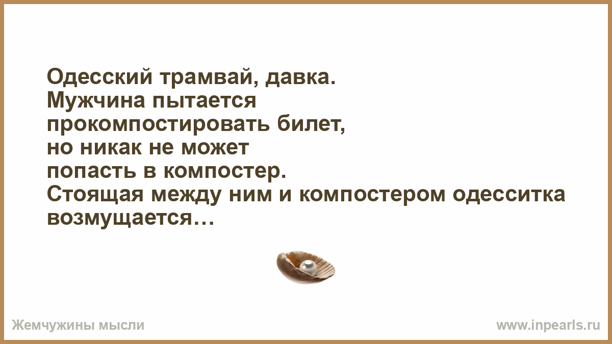 — А що я сделаю, если он у мене мятый?! Остановка.