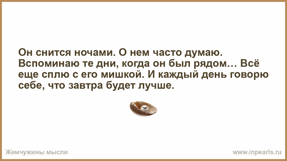 Он снится ночами. О нем часто думаю. Вспоминаю те дни, когда он был рядом… Всё еще сплю с его мишкой. И каждый день говорю себе, что завтра будет лучше.